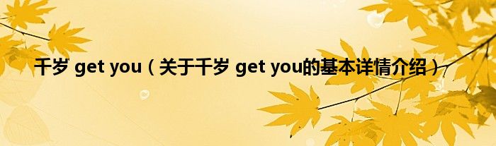 本文关于千岁 get you的基本详情介绍就讲解完毕,希望对大家有所帮助。