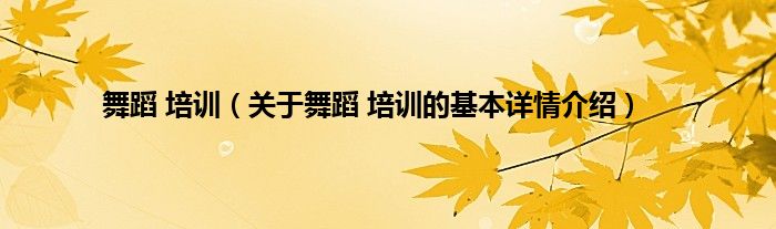 舞蹈 培训(关于舞蹈 培训的基本详情介绍)