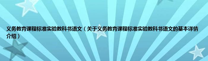 义务教育课程标准实验教科书语文(关于义务教育课程标准实验教科书语文的基本详情介绍)