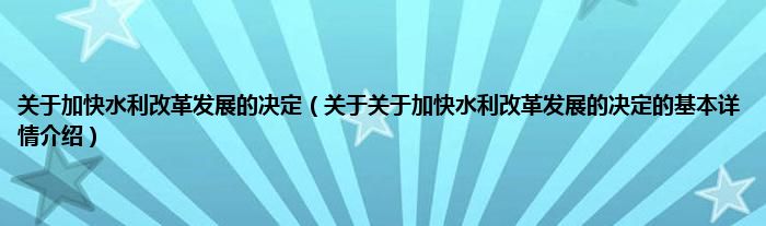本文关于关于加快水利改革发展的决定的基本详情介绍就讲解完毕,希望对大家有所帮助。