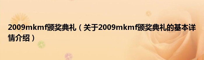 2009mkmf颁奖典礼(关于2009mkmf颁奖典礼的基本详情介绍)