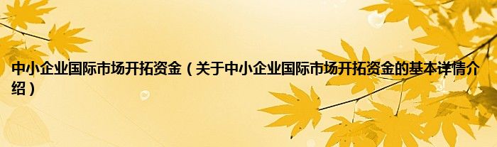 本文关于中小企业国际市场开拓资金的基本详情介绍就讲解完毕,希望对大家有所帮助。