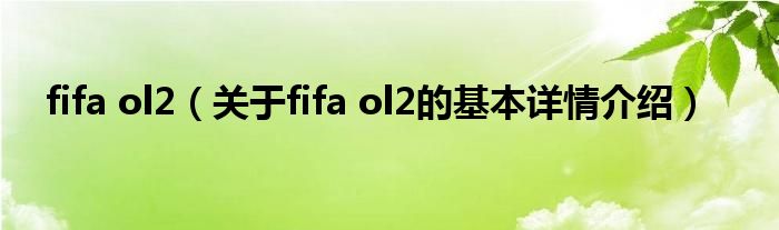 本文关于fifa ol2的基本详情介绍就讲解完毕,希望对大家有所帮助。