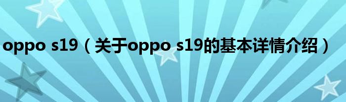 本文关于oppo s19的基本详情介绍就讲解完毕,希望对大家有所帮助。