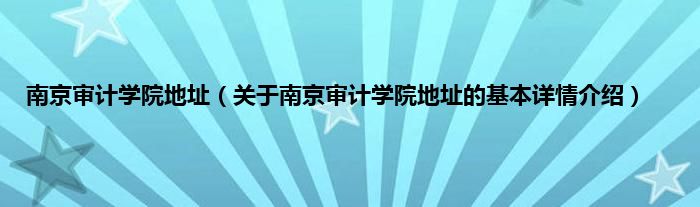 本文关于南京审计学院地址的基本详情介绍就讲解完毕,希望对大家有所帮助。