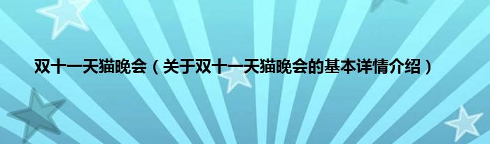 本文关于双十一天猫晚会的基本详情介绍就讲解完毕,希望对大家有所帮助。