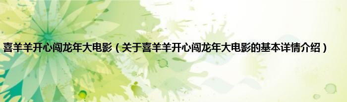 本文关于喜羊羊开心闯龙年大电影的基本详情介绍就讲解完毕,希望对大家有所帮助。