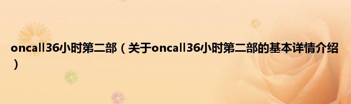 本文关于oncall36小时第二部的基本详情介绍就讲解完毕,希望对大家有所帮助。