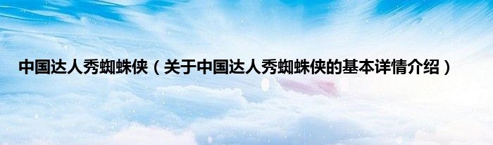 本文关于中国达人秀蜘蛛侠的基本详情介绍就讲解完毕,希望对大家有所帮助。