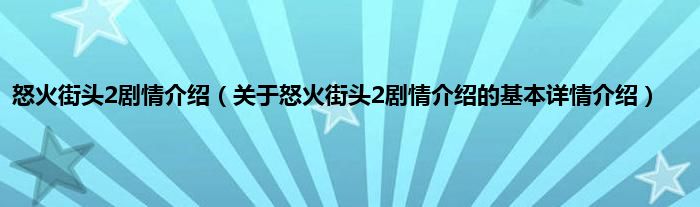 本文关于怒火街头2剧情介绍的基本详情介绍就讲解完毕,希望对大家有所帮助。