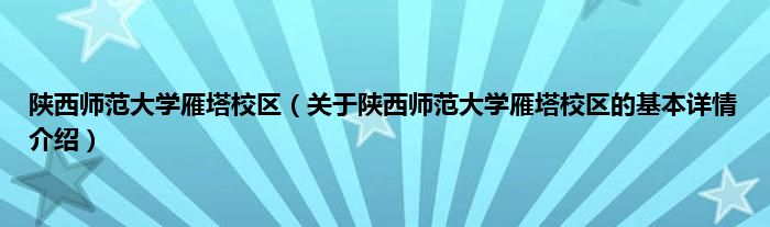 本文关于陕西师范大学雁塔校区的基本详情介绍就讲解完毕,希望对大家有所帮助。