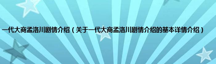 本文关于一代大商孟洛川剧情介绍的基本详情介绍就讲解完毕,希望对大家有所帮助。