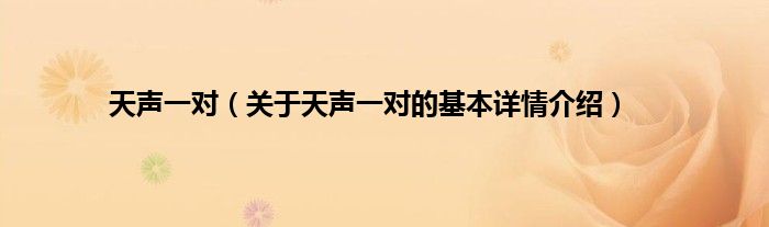 本文关于天声一对的基本详情介绍就讲解完毕,希望对大家有所帮助。
