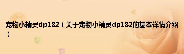 本文关于宠物小精灵dp182的基本详情介绍就讲解完毕,希望对大家有所帮助。