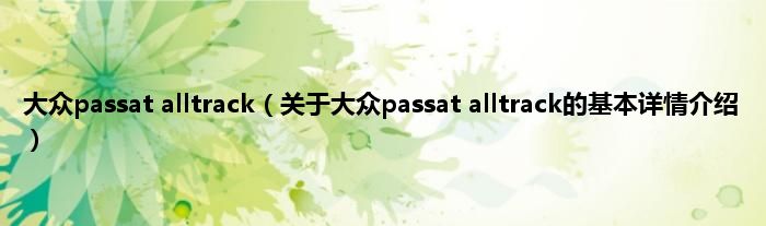 本文关于大众passat alltrack的基本详情介绍就讲解完毕,希望对大家有所帮助。