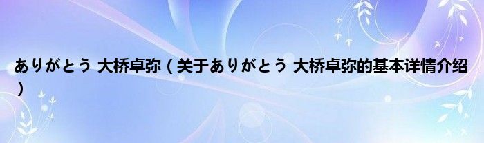 本文关于ありがとう 大桥卓弥的基本详情介绍就讲解完毕,希望对大家有所帮助。