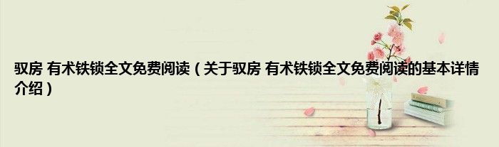 本文关于驭房 有术铁锁全文免费阅读的基本详情介绍就讲解完毕,希望对大家有所帮助。