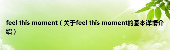 本文关于feel this moment的基本详情介绍就讲解完毕,希望对大家有所帮助。