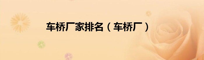大家好,小问来为大家解答以上问题。车桥厂家排名,车桥厂这个很多人还不知道,现在让我们一起来看看吧!