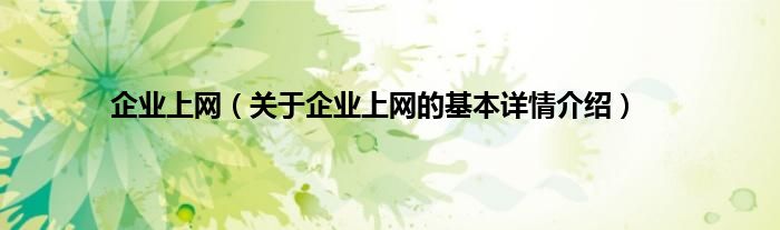 本文关于企业上网的基本详情介绍就讲解完毕,希望对大家有所帮助。