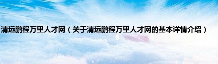 本文关于清远鹏程万里人才网的基本详情介绍就讲解完毕,希望对大家有所帮助。