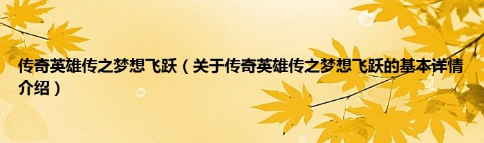 本文关于传奇英雄传之梦想飞跃的基本详情介绍就讲解完毕,希望对大家有所帮助。