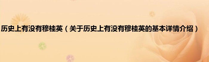 本文关于历史上有没有穆桂英的基本详情介绍就讲解完毕,希望对大家有所帮助。
