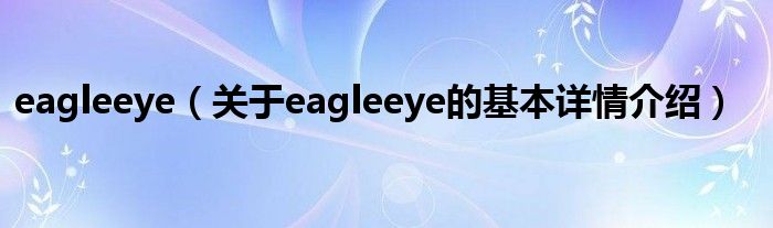 本文关于eagleeye的基本详情介绍就讲解完毕,希望对大家有所帮助。