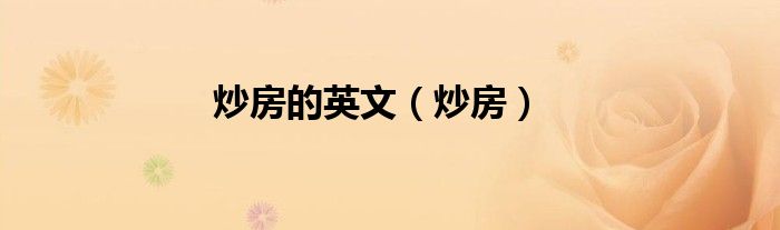 大家好,小问来为大家解答以上问题。炒房的英文,炒房这个很多人还不知道,现在让我们一起来看看吧!
