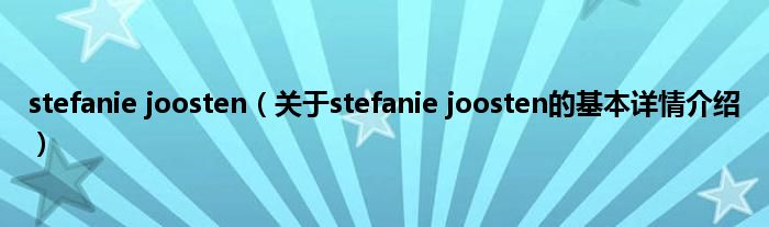 stefanie joosten(关于stefanie joosten的基本详情介绍)