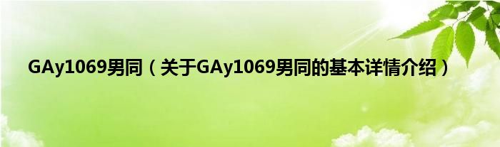 本文关于GAy1069男同的基本详情介绍就讲解完毕,希望对大家有所帮助。