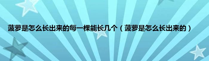以上就是【菠萝是怎么长出来的每一棵能长几个,菠萝是怎么长出来的】相关内容。