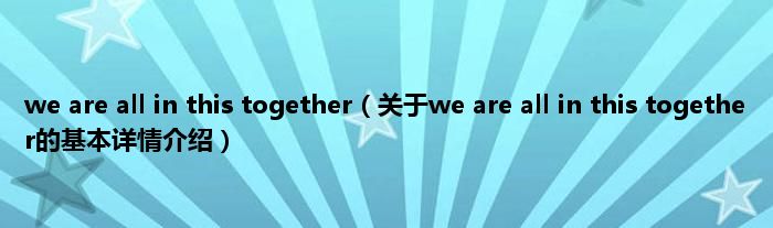 本文关于we are all in this together的基本详情介绍就讲解完毕,希望对大家有所帮助。
