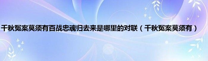 以上就是【千秋冤案莫须有百战忠魂归去来是哪里的对联,千秋冤案莫须有】相关内容。