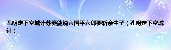 大家好,小问来为大家解答以上问题。孔明定下空城计苏秦能说六国平六郎要斩亲生子,孔明定下空城计这个很多人还不知道,现在让我们一起来看看吧!