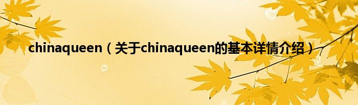 本文关于chinaqueen的基本详情介绍就讲解完毕,希望对大家有所帮助。
