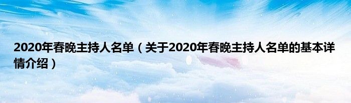 本文关于2020年春晚主持人名单的基本详情介绍就讲解完毕,希望对大家有所帮助。