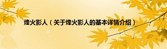本文关于烽火影人的基本详情介绍就讲解完毕,希望对大家有所帮助。