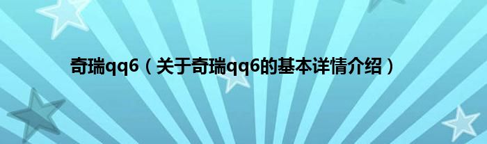 本文关于奇瑞qq6的基本详情介绍就讲解完毕,希望对大家有所帮助。