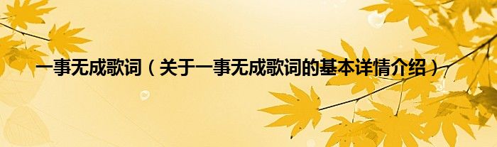 本文关于一事无成歌词的基本详情介绍就讲解完毕,希望对大家有所帮助。