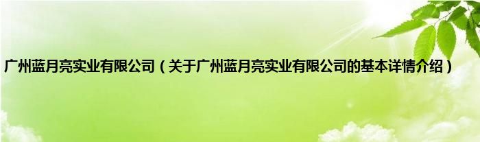 本文关于广州蓝月亮实业有限公司的基本详情介绍就讲解完毕,希望对大家有所帮助。