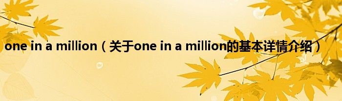 本文关于one in a million的基本详情介绍就讲解完毕,希望对大家有所帮助。