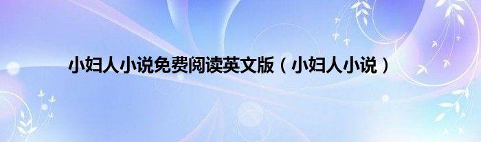 大家好,小问来为大家解答以上问题。小妇人小说免费阅读英文版,小妇人小说这个很多人还不知道,现在让我们一起来看看吧!