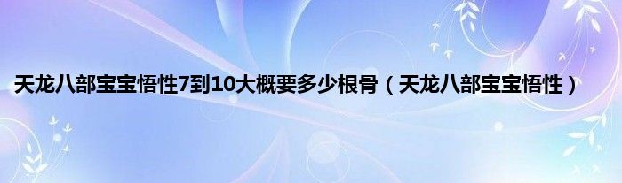 大家好,小问来为大家解答以上问题。天龙八部宝宝悟性7到10大概要多少根骨,天龙八部宝宝悟性这个很多人还不知道,现在让我们一起来看看吧!