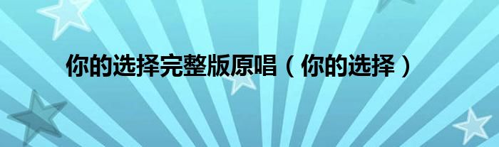 大家好,小问来为大家解答以上问题。你的选择完整版原唱,你的选择这个很多人还不知道,现在让我们一起来看看吧!