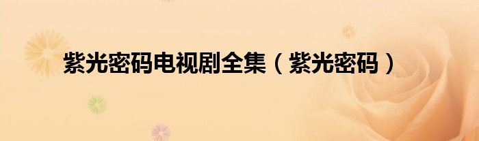 大家好,小问来为大家解答以上问题。紫光密码电视剧全集,紫光密码这个很多人还不知道,现在让我们一起来看看吧!