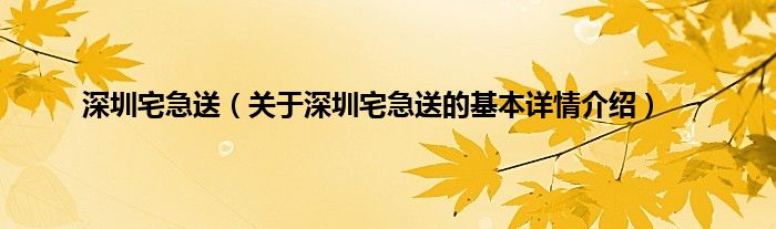 本文关于深圳宅急送的基本详情介绍就讲解完毕,希望对大家有所帮助。