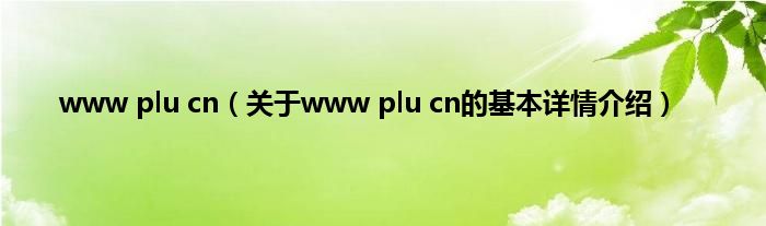 本文关于www plu cn的基本详情介绍就讲解完毕,希望对大家有所帮助。