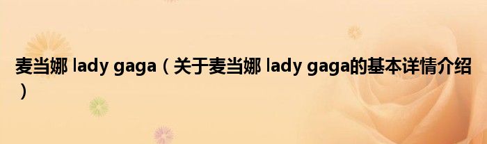 本文关于麦当娜 lady gaga的基本详情介绍就讲解完毕,希望对大家有所帮助。