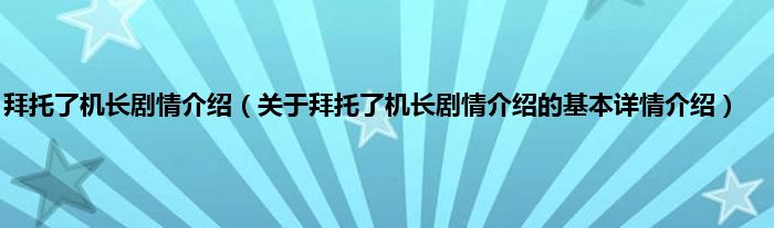 本文关于拜托了机长剧情介绍的基本详情介绍就讲解完毕,希望对大家有所帮助。